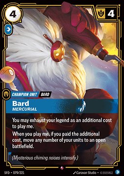 Shop › Riftbound: League of Legends TCG › Riftbound Single Cards › Bard, Mercurial (V.1) 079/221 - Rare