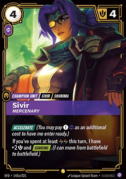 Shop › Riftbound: League of Legends TCG › Riftbound Single Cards › Sivir, Mercenary (V.2) 143a/221 - Showcase