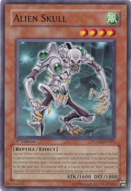 Card Text: You can Tribute 1 face-up Level 3 or lower monster on your opponent's side of the field to Special Summon this card to your opponent's side of the field. If you Special Summon the monster this way, place 1 A-Counter on this card, and you cannot Normal Summon or Set the same turn. (If a monster with an A-Counter battles an "Alien" monster, it loses 300 ATK and DEF for each A-Counter during damage calculation only.)
