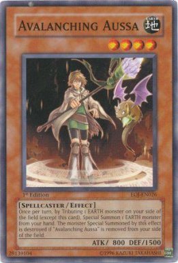 Card Text: Once per turn, by Tributing 1 EARTH monster on your side of the field (except this card), Special Summon 1 EARTH monster from your hand. The monster Special Summoned by this effect is destroyed if "Avalanching Aussa" is removed from your side of the field.