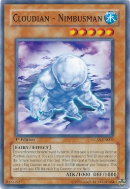 Card Text: This card cannot be destroyed by battle. If this card is in face-up Defense Position, destroy it. You can Tribute any number of WATER monsters for the Tribute Summon of this card. When this card is Tribute Summoned, place 1 Fog Counter on it for each WATER monster you Tributed. This card gains 500 ATK for each Fog Counter on the field.