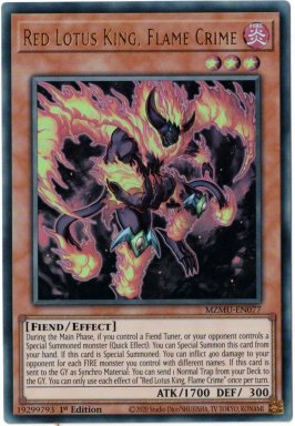 Shop › Yu-Gi-Oh Cards & Field Centers › Yu-Gi-Oh Single Cards › Red Lotus King, Flame Crime - MZMU-EN077 - Ultra Rare 1st Edition